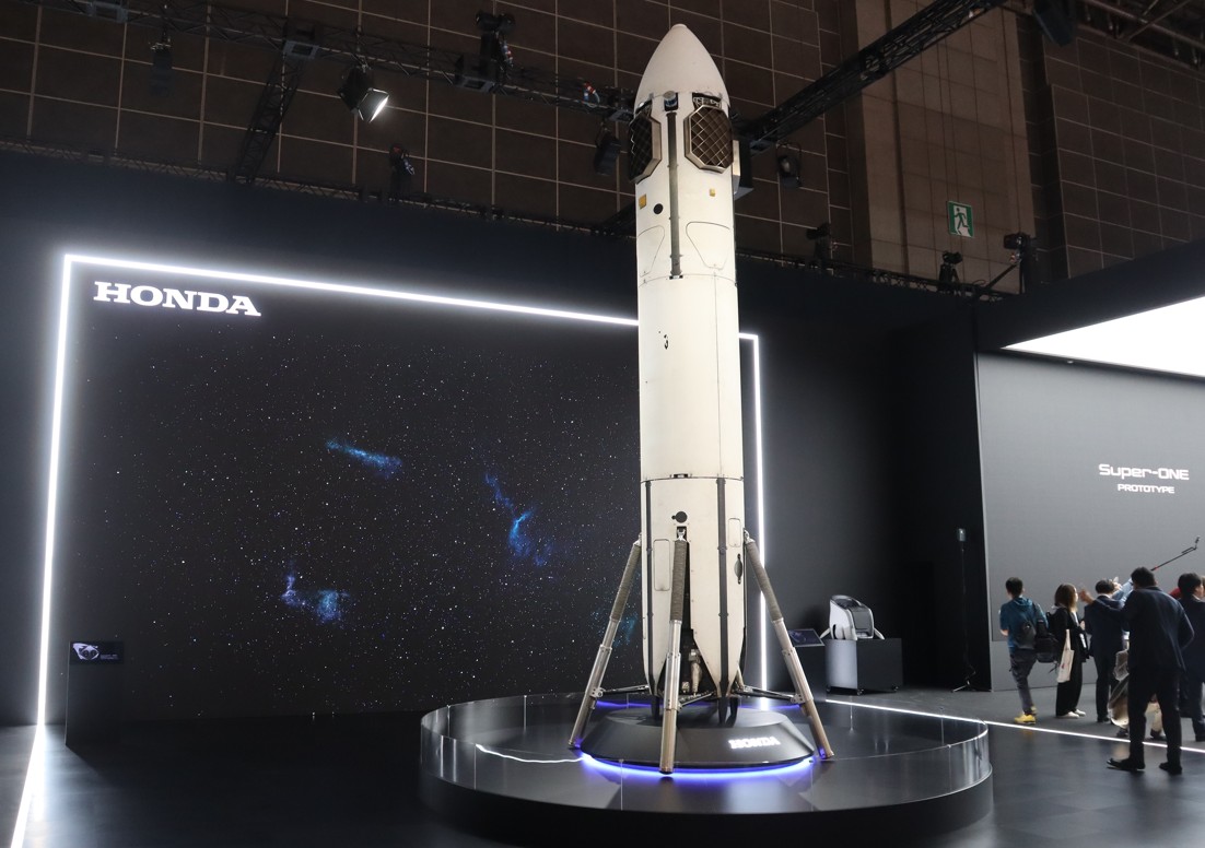 航空機では高い評価を得ている「HondaJet EliteⅡ」の実物大の模型を展示。同社は地球の空に止まらず、宇宙領域にも挑戦。すでに今年6月に実験を行ったサステナブルロケットも披露した。