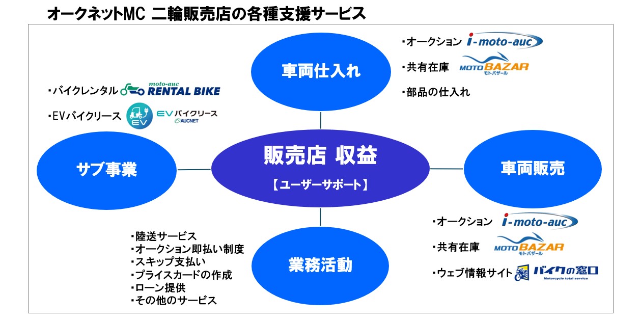 そうした専門店舗は、小規模ながらも高い収益を上げてきている場合が少なくない。業者向け中古バイクオークションを開催する株式会社オークネットは、会員店であるバイク販売店などの経営・運営業務を総合的にサポートする様々な各種サービスを提供している。同社の中古バイクオークション「i-moto-auc」(アイ・モト・オーク)は、そうした取扱いバイクを限定するための仕入れ先としては、最も有効といえそうだ。なぜなら、特定のカテゴリーモデルだけに製品を一気に変えることも可能だからだ。メーカー系の専売店では不可能であろう。