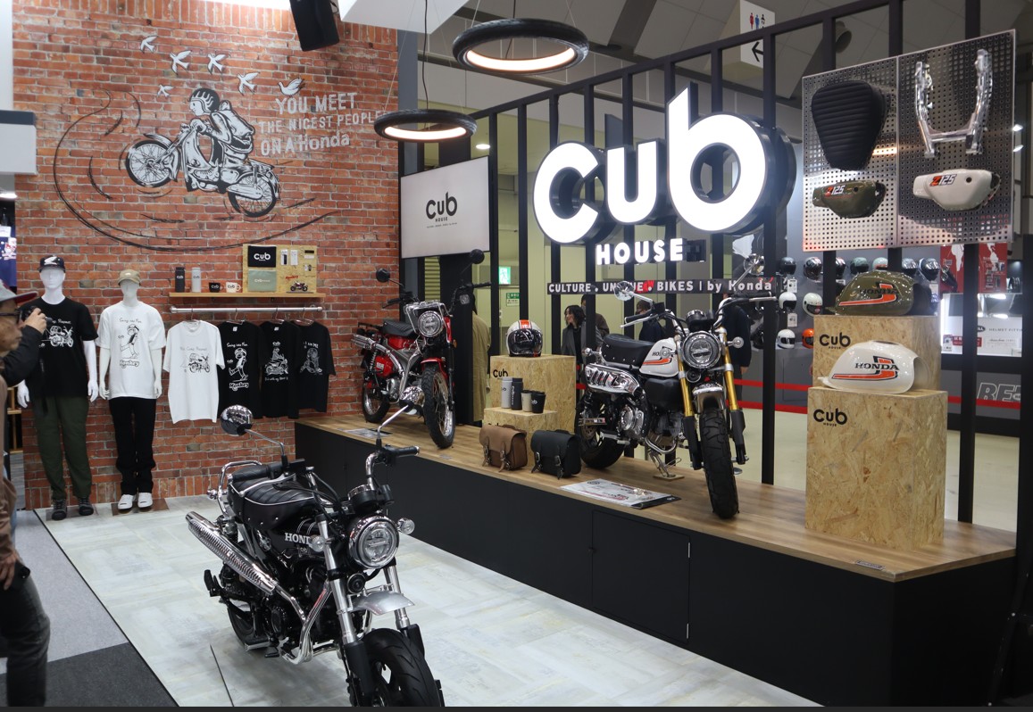 流通でもNext Stageの展開を披露した。新たな販売店コンセプトのCub Houseをイメージしたショップコーナーを用意。若者ユーザーの拡大の布石として、51~125㏄原付二種のMonkey125やCT125・ハンターカブ、Dax125などの中心に、カスタムの推奨やオリジナルアパレルやライディングギア、グッズなどを提供。4月25日に埼玉県戸田市に開設し、順次全国展開を図る。すでに予想を超える多くの販売店から、Cub House開設の希望を受け付けているなどとしている(宗岡克博・社長)。