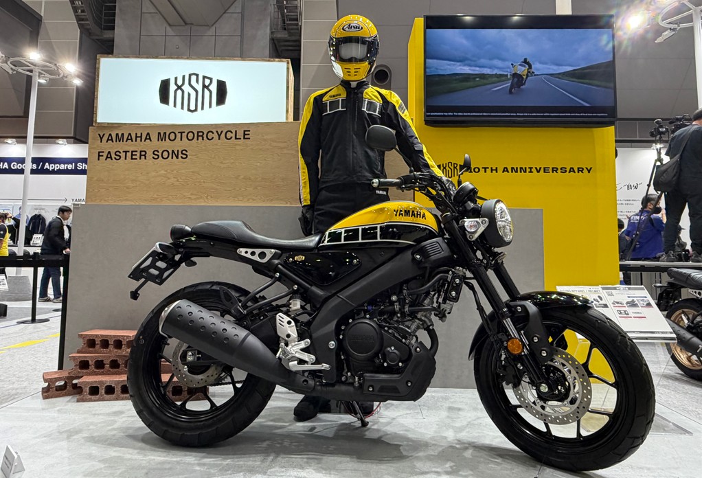 ネイキッドモデルの「XSR155」は、同900GPに続くUSインターカラーの“イエロー”を展示。1970年代から80 年代にかけてアメリカのレースシーンで活躍したヤマハ車、および1978~80 年のWGP500 マシンに採用したカラーとグラフィックを再現したもの。