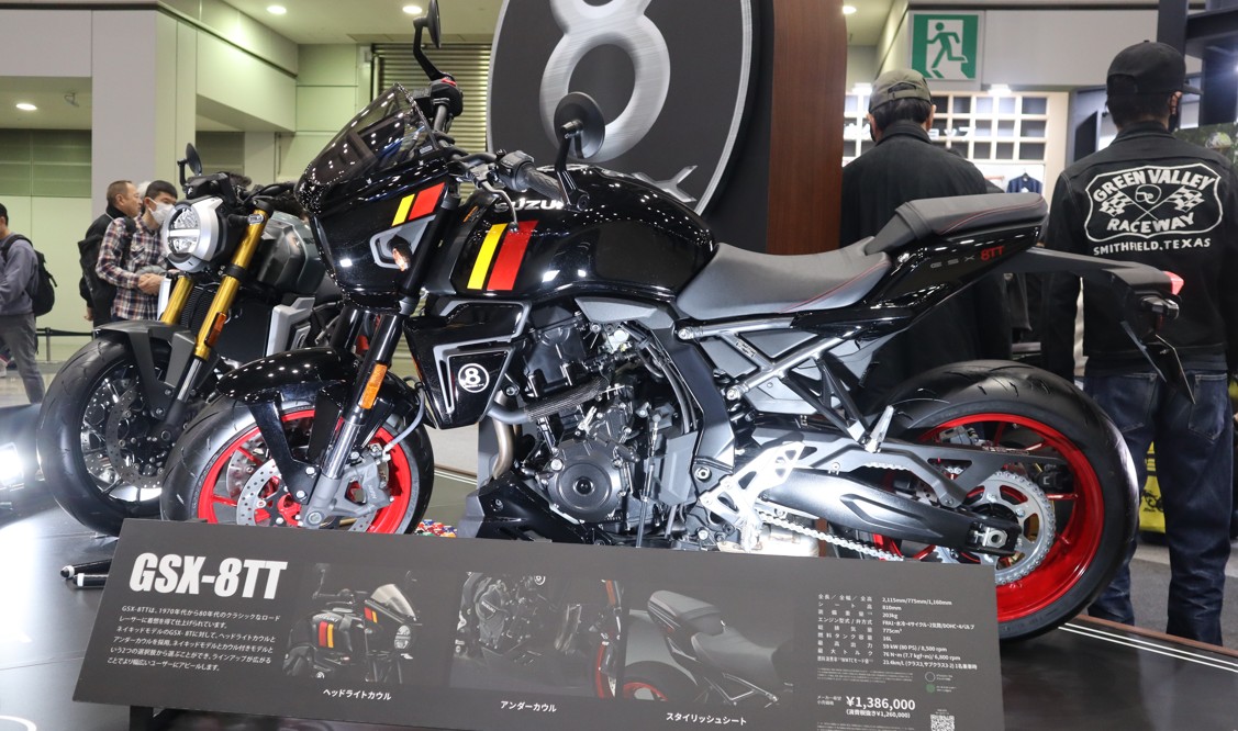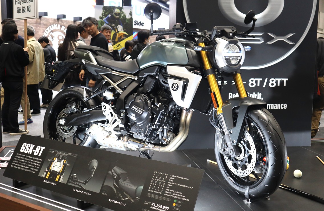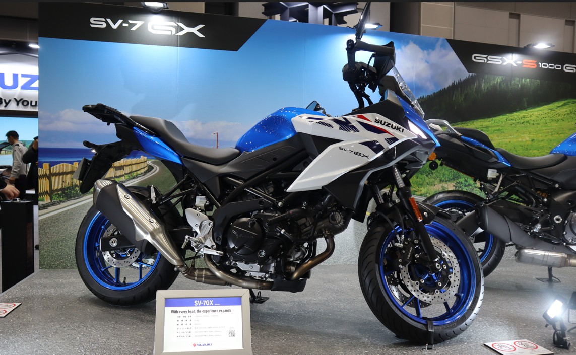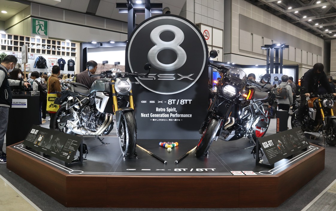 展示ではレトロ感を醸しだす新型「GSX-8T」「GSX-8TT」や、評価が高い「Hayabusa」、注目の「DR-Z4S」「DR-Z4SM」などを中心にまたがり可能な車両も多数用意。また 新型「SV-7GX」や新型「GSX-S1000GX」海外仕様モデル、原付一種の折り畳み電動モペッド「e-PO」などの参考出品も展示した。