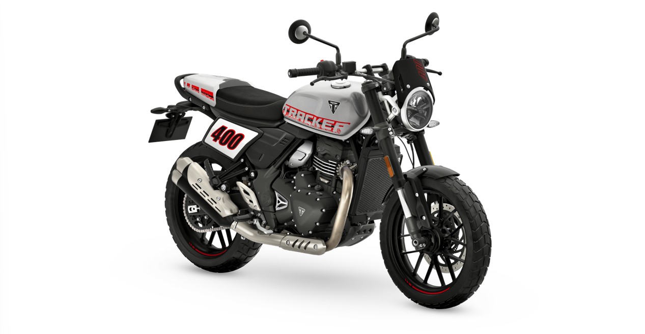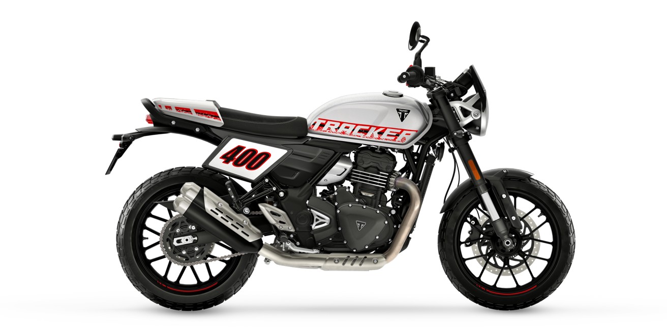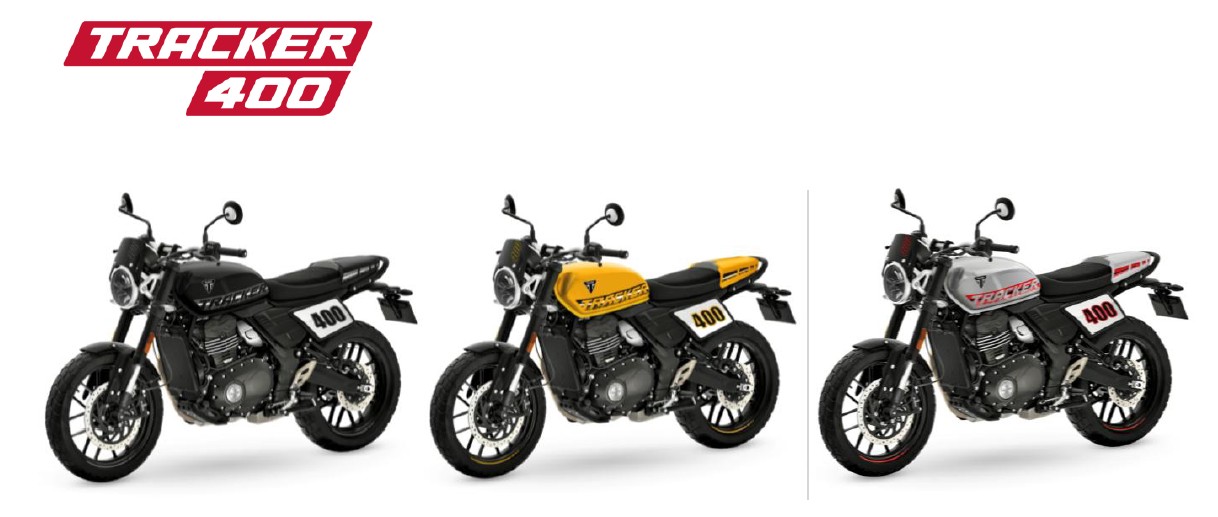 Tracker 400は、フラットトラックレーサーのスピリットに触発され、大胆なスタイルとレースをルーツとするグラフィックを組み合わせたとする。Thruxton 400は、カフェレーサースタイルを体現するモデルで、そのスタイルの象徴として設計。これまで同社は、ロードスターの血統を受け継ぐ、70万円を切る戦略車とするSpeed 400に加え、ScramblerデザインのDNAを受け継ぐScrambler400X/同XCの3機種を発売。