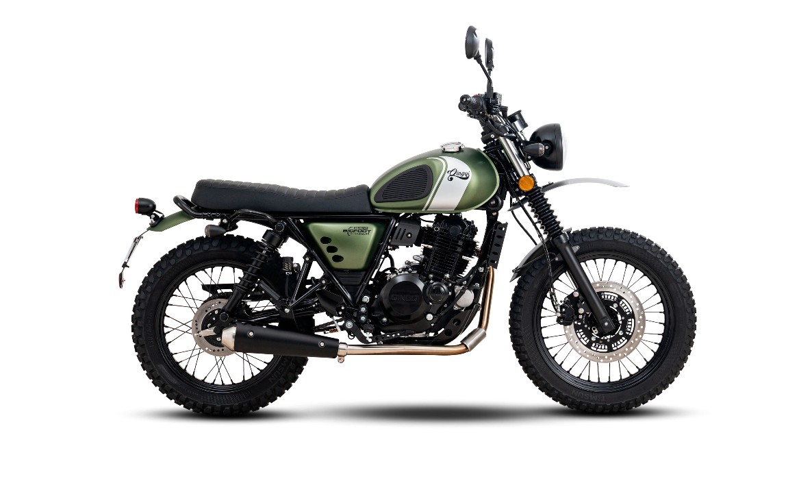 CLASSIC250はシンプルでクラシカルなスタイリングを特徴とし、街乗りにも映えるデザインを採用。一方のBIGFOOT250 Scramblerは、大径ホイールやスキッドプレート、マフラーガードなどを装備し、ラフロードテイストを強めたスクランブラースタイルとした。